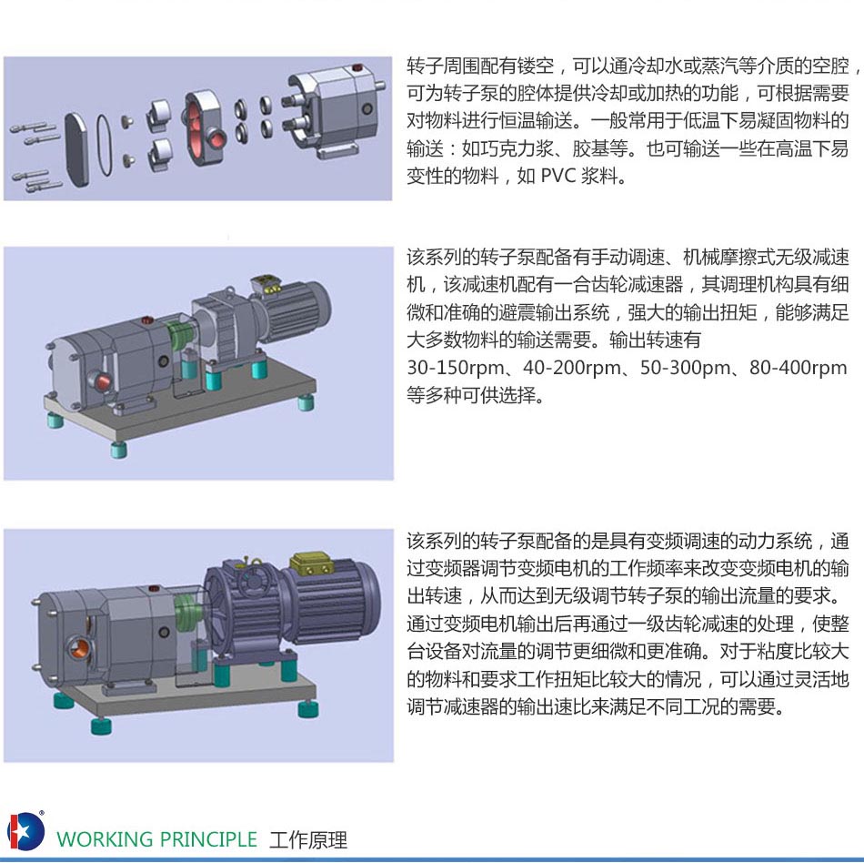 為容積式泵,低轉速,高輸出扭矩、耐高溫的特點使轉子泵在輸送高粘度、高溫度的物料的領域中得以大
