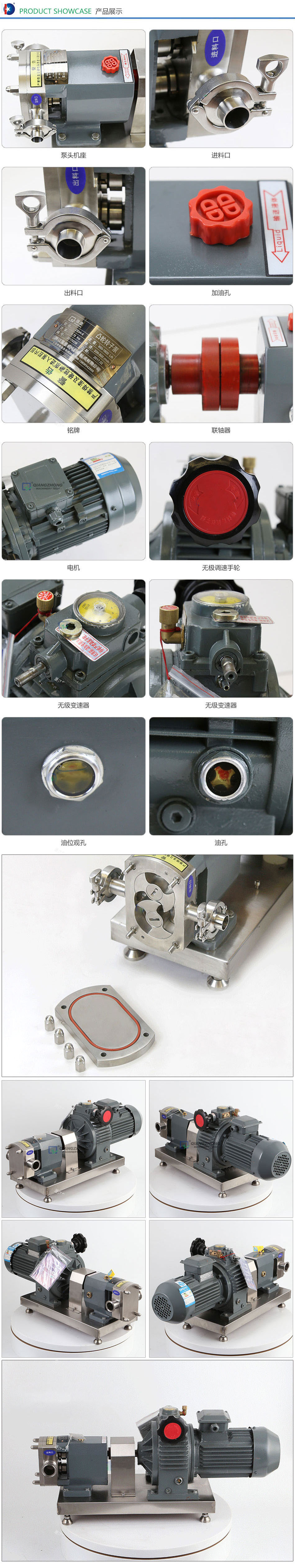 轉子泵在工作中不存在任何零件的磨損(除機械密封外),所有與物料接觸的零件均為不銹鋼制作,一對